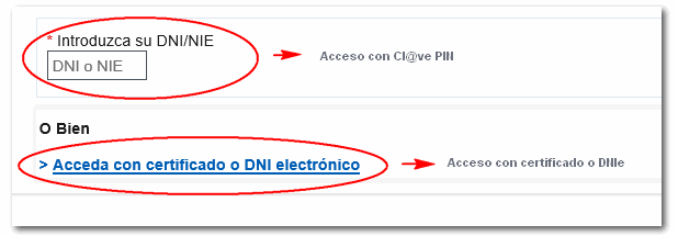 Como indicábamos, realizar esta gestión de forma digital requiere tener activada la identificación electrónica ya que aparecen las siguientes dos opciones de autentificación:
